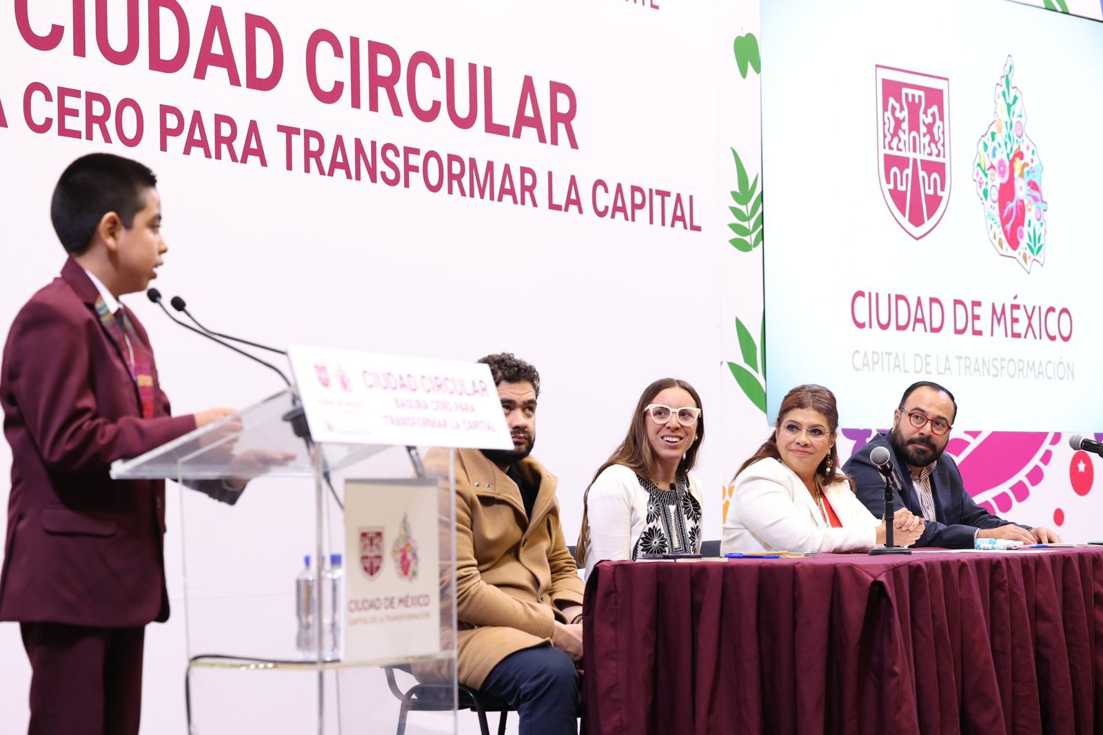 La mandataria capitalina subrayó que la estrategia busca dejar atrás la economía lineal y transitar a la economía circular, en la que los residuos se convierten en recursos.