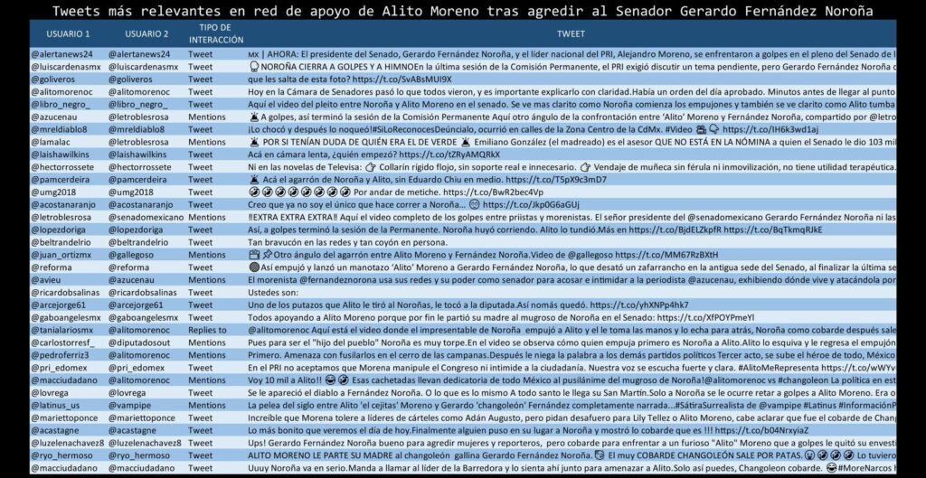 De acuerdo con Jiménez Zárate, tras la agresión a Fernández Noroña, las redes sociales se inundaron de mensajes que aparentaban un respaldo ciudadano a Alejandro Moreno, dirigente del PRI. Sin embargo, detrás de esa narrativa se identificaron decenas de miles de bots y cuentas coordinadas que, de manera artificial, simularon apoyo a “Alito” Moreno.