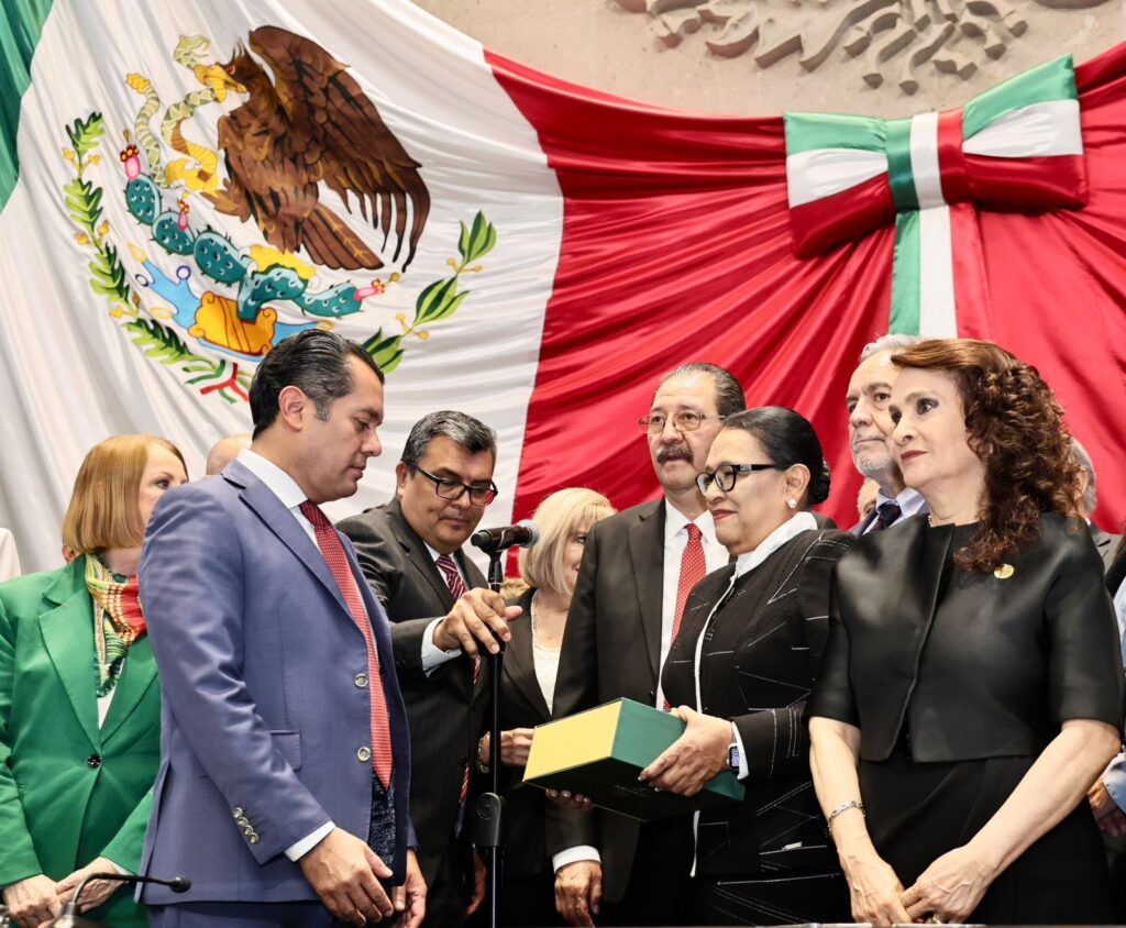 En la sesión solemne también estuvieron presentes la presidenta de la Mesa Directiva del Senado, Laura Itzel Castillo Juárez, así como las y los integrantes de las Juntas de Coordinación Política de ambas cámaras.