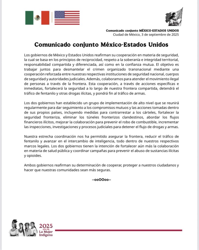 Fuente: Comunicado Conjunto México–Estados Unidos, 3 de septiembre de 2025