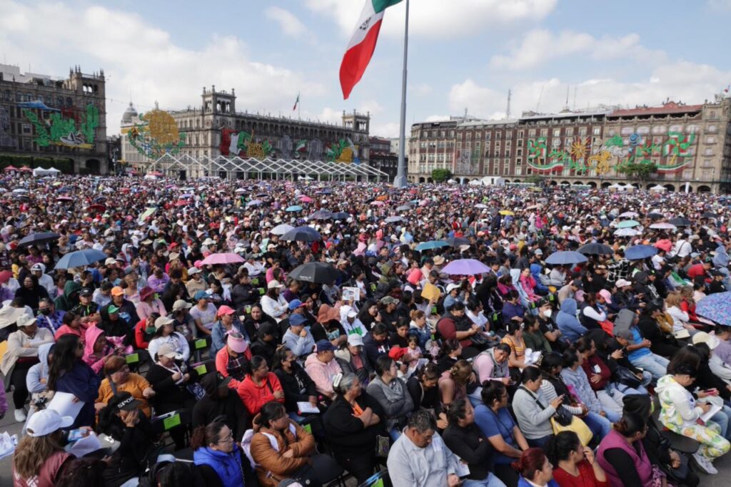 La jefa de Gobierno de la Ciudad de México, Clara Brugada Molina, encabezó en el Zócalo capitalino la entrega de vales del programa Mercado, Comunidad y Abasto (Mercomuna), iniciativa que este año beneficiará a más de 300 mil familias de escasos recursos y al mismo tiempo impulsará al comercio local.
