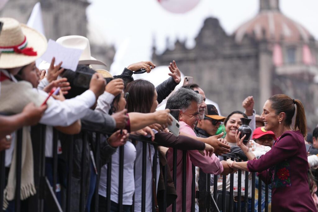 “Estoy segura que vamos por el camino correcto”, afirmó la mandataria desde la Plaza de la Constitución. “Reafirmamos nuestro compromiso con la Cuarta Transformación. Mi compromiso es entregar mi alma, mi vida y lo mejor de mí misma por el bienestar del pueblo de México”.