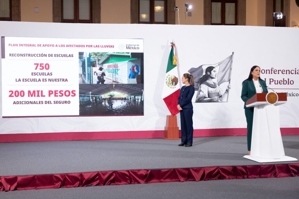 En cuanto a los 750 planteles de educación básica y media superior que resultaron afectados, a través del progama La Escuela es Nuestra recibirán 200 mil pesos adicionales a la cobertura de la aseguradora Agroasemex. Asimismo la presidenta detalló que en una primera etapa serán 10 mil millones de pesos en apoyos directos.