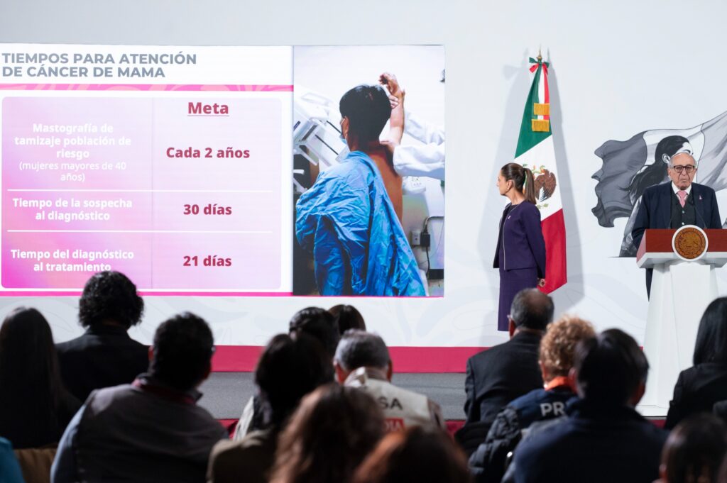 México; 21 de octubre 2025.— En un esfuerzo por disminuir la mortalidad por cáncer de mama, el Gobierno de México presentó este martes el Modelo de Atención Universal de Cáncer de Mama, centrado en prevención, diagnóstico oportuno y tratamiento integral. La presidenta Claudia Sheinbaum destacó que el objetivo es claro: “Reducir las muertes por cáncer de mama en un plazo máximo de dos años, es decir, para 2027”.