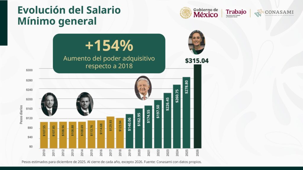 El incremento anunciado se suma a la tendencia de recuperación del salario mínimo desde 2018 y consolida, de acuerdo con el gobierno federal, una política centrada en mejorar el poder adquisitivo sin afectar el crecimiento económico.