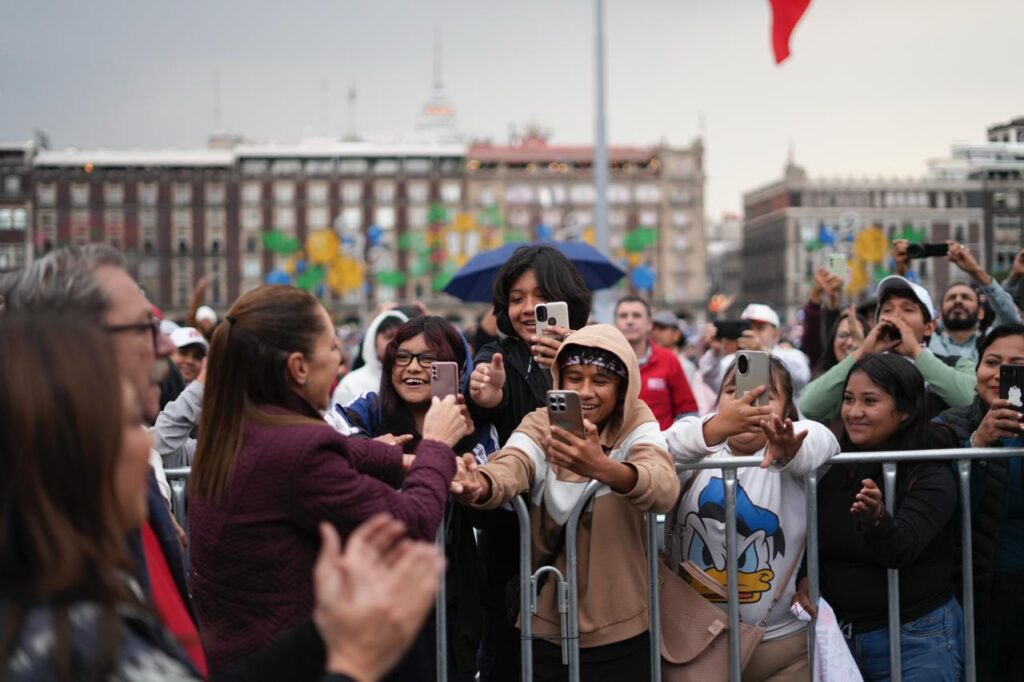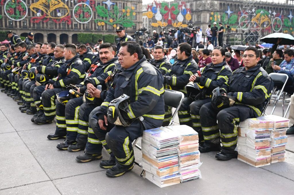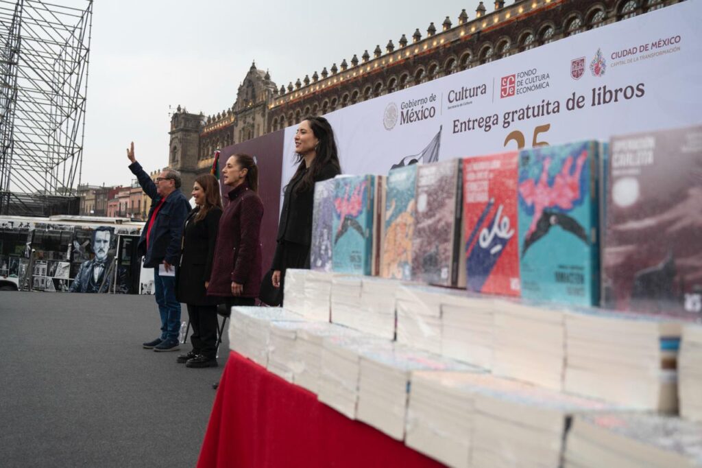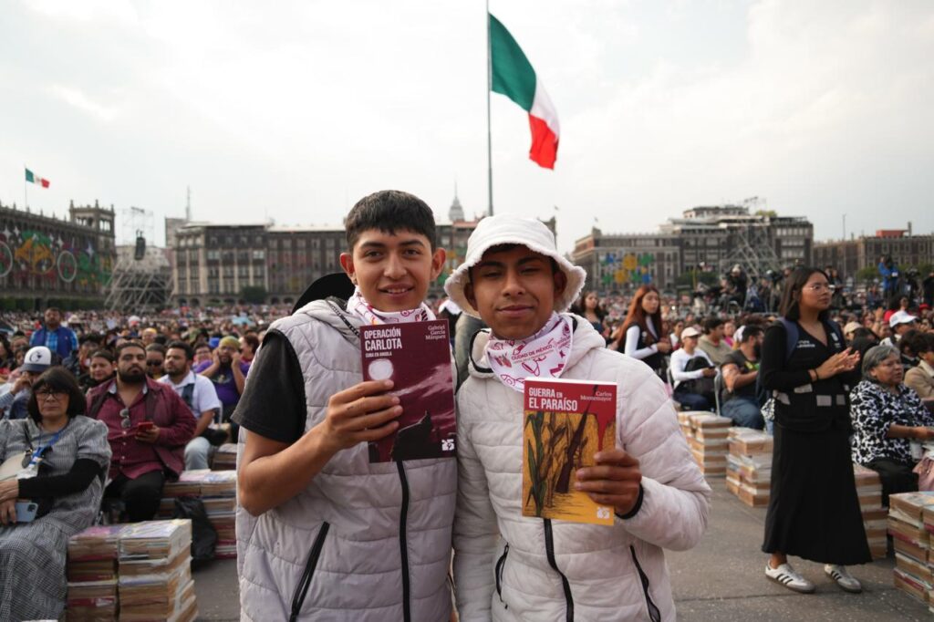 México; 17 de diciembre 2025.— Con un llamado a fortalecer la reflexión y la conciencia colectiva, la presidenta Claudia Sheinbaum Pardo encabezó este miércoles en el Zócalo de la Ciudad de México la entrega de libros gratuitos de la colección 25 para el 25, un proyecto del Fondo de Cultura Económica (FCE) dirigido a jóvenes de entre 15 y 30 años.