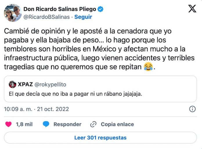 Foto: Redes Sociales – Publicaciones realizadas por el empresario Ricardo Salinas Pliego mientras avanzaron los juicios, controversias legales que se espera concluya en enero con la notificación de cobro y posterior pago de la deuda fiscal