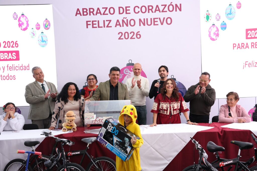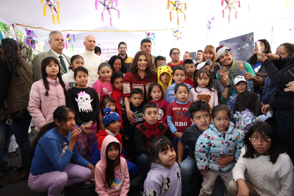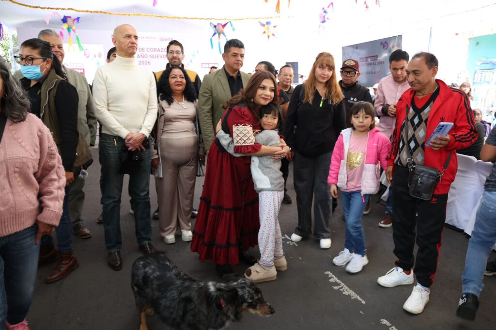 El anuncio se dio en un ambiente comunitario, con actividades para niñas y niños y la entrega de apoyos invernales a las familias, como parte de una política de gobierno cercano, de territorio y atención directa.