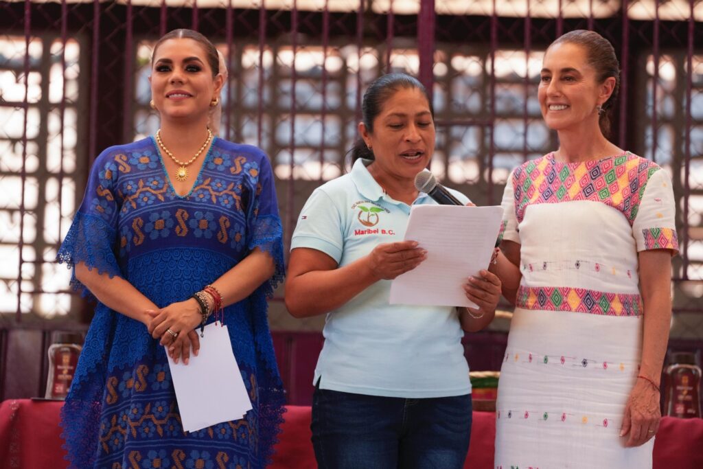 Durante la visita, la mandataria recordó que el programa Alimentación para el Bienestar adquiere las cosechas en distintas regiones del país a precios justos, a diferencia de lo que ocurría anteriormente, cuando los productores recibían montos mínimo que los intermediarios les entregaban.