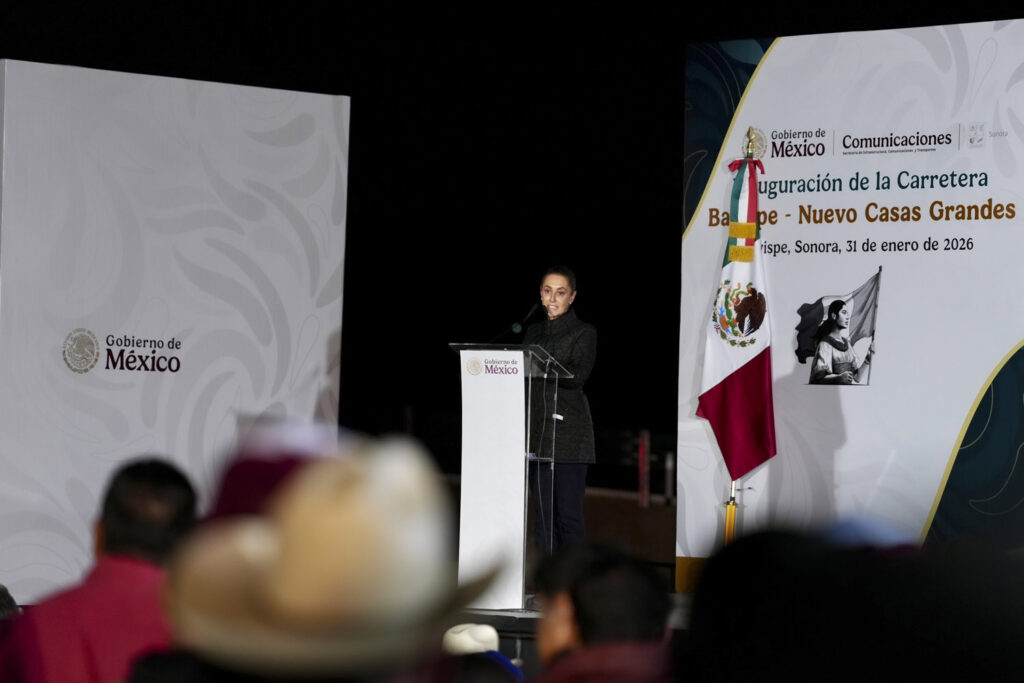 México; 1 de febrero 2026.— Con una inversión de mil 822 millones de pesos y una longitud de más de 134 kilómetros, la carretera Bavispe–Nuevo Casas Grandes fue inaugurada por la presidenta Claudia Sheinbaum Pardo, consolidándose como una vía estratégica que conecta a Sonora y Chihuahua, y reduce el tiempo de traslado entre ambas entidades a una hora y media.