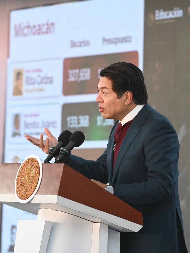 En educación, el titular de la SEP, Mario Delgado Carrillo, destacó que ya dio inicio la entrega de tarjetas de la Beca de apoyo para transporte Gertrudis Bocanegra para educación superior de mil 900 pesos bimestrales a 44 mil 76 jóvenes inscritos que a finales de mes recibirán su primer depósito. Además, en el estado hay 327 mil estudiantes beneficiados de la beca Universal Rita Cetina Gutiérrez; 133 mil de la beca Universal Benito Juárez; 17 mil 35 de la Beca Jóvenes Escribiendo el Futuro y 300 mil de la beca para útiles y uniformes. En total en la entidad son 850 mil becarios a través de una inversión de 5 mil 500 mdp.
