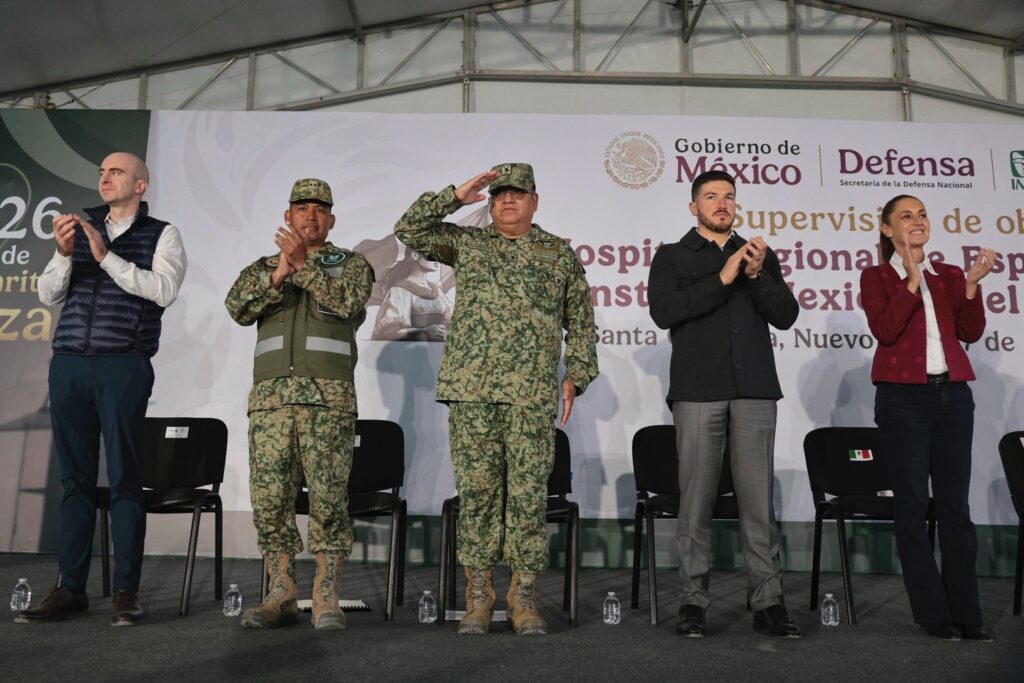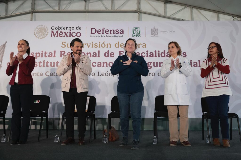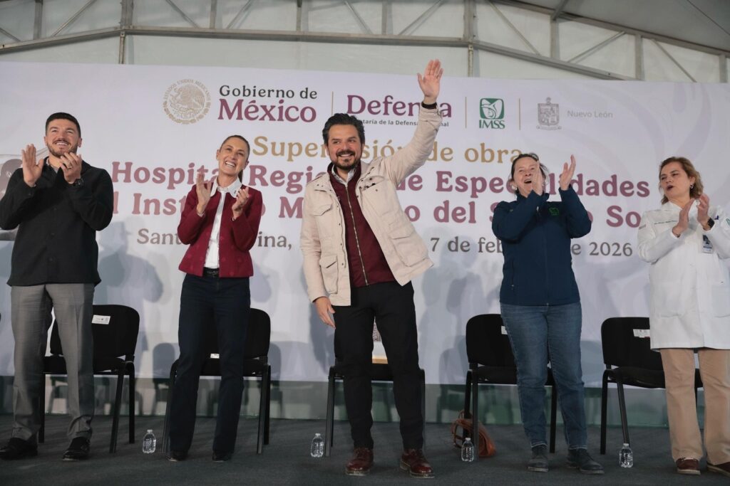 Santa Catarina, Nuevo León; 8 de febrero 2026.— Durante una gira de trabajo por Nuevo León, la presidenta de México, Claudia Sheinbaum Pardo, supervisó los avances de la construcción del nuevo Hospital General de Santa Catarina, una obra destinada a ampliar la capacidad del sistema de salud en la entidad, y reconoció la labor de los trabajadores del Instituto Mexicano del Seguro Social (IMSS).
