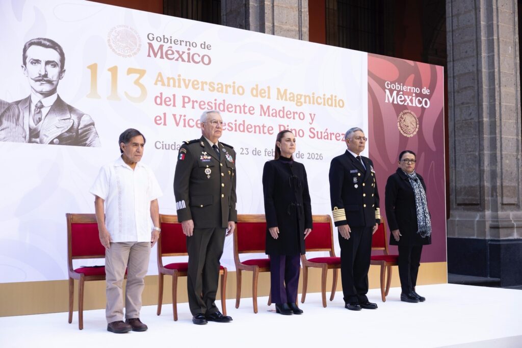 México; 23 de febrero 2026.— En el Patio de Honor de Palacio Nacional, la presidenta Claudia Sheinbaum Pardo encabezó la ceremonia por el 113 Aniversario Luctuoso de Francisco I. Madero y José María Pino Suárez, asesinados durante el golpe de Estado de Victoriano Huerta en 1913.