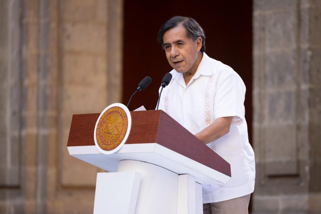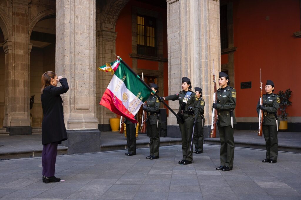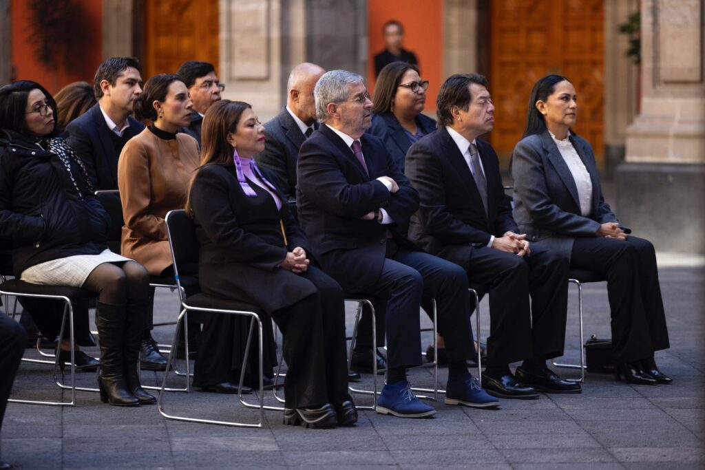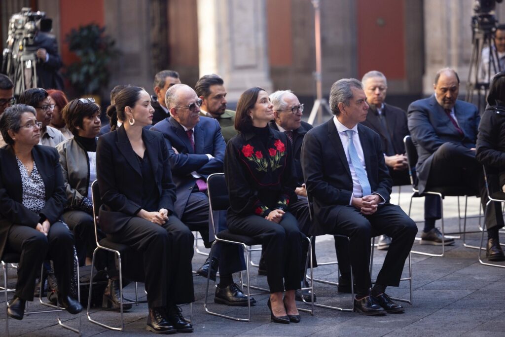 En la ceremonia acompañaron a la presidenta la secretaria de Gobernación, Rosa Icela Rodríguez Velázquez; el secretario de la Defensa Nacional, Ricardo Trevilla Trejo; y el secretario de Marina, Raymundo Pedro Morales Ángeles.